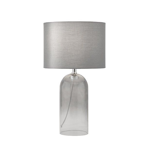 Настолна лампа с лен абажур, сиво стъкло, сребърна, 26x26x45см