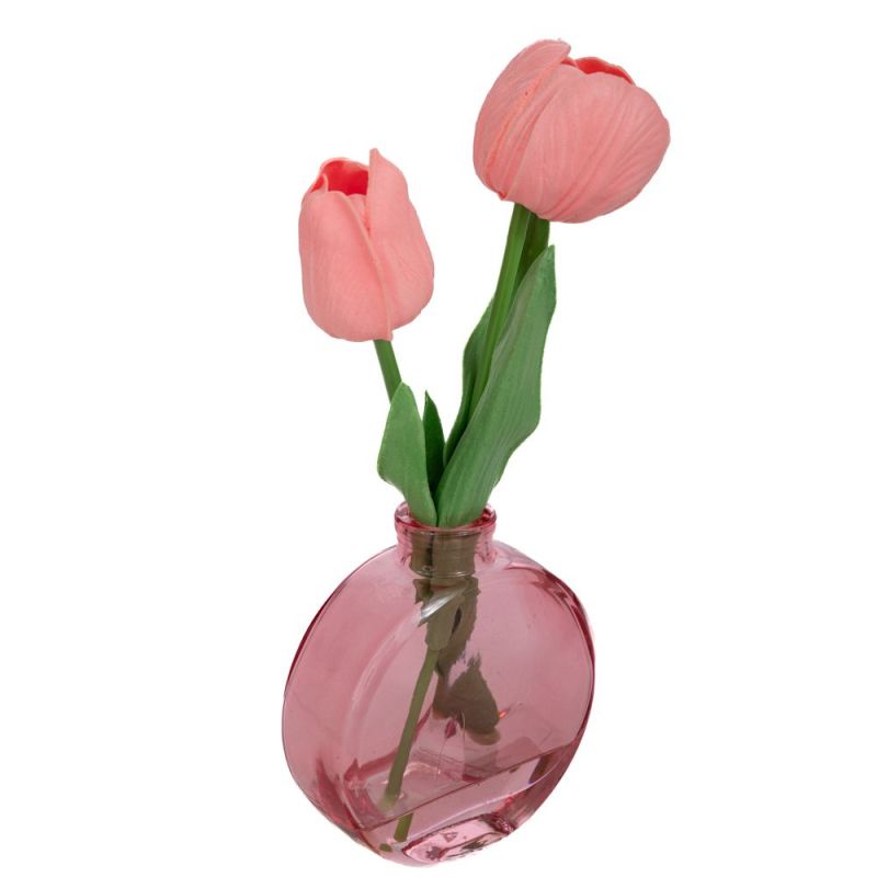 РОЗОВО ЛАЛЕ 23 СМ В СТЪКЛЕНА САКСИЯ 9X10 СМ