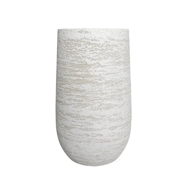 Саксия от влакна глина, бяло-кремав, висока, кръгла, голяма, Φ55x95см