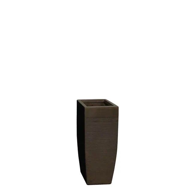 Саксия от влакна глина, тъмнокафява, на раици, висока, квадратна, извита, малка - 20x20x45см