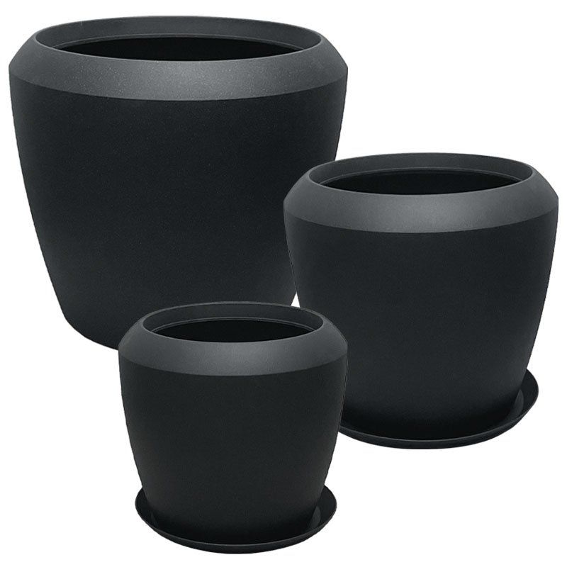 Саксия от полисмола с комплект чинии/5 черни въглени помпи - Д:φ55.6x48.4, М:φ44x39.5, Ш:φ33.5x30.5см