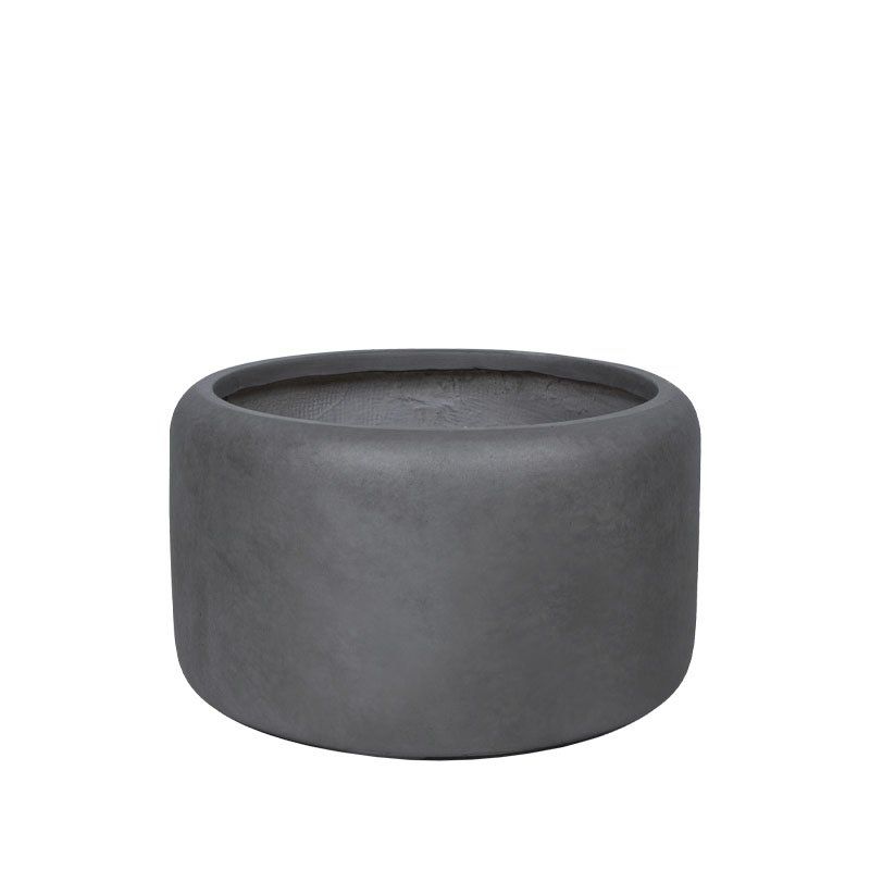 Саксия от фиберглина, сива, с въглищна бухел, помпа, къса, голяма - Φ55x33см