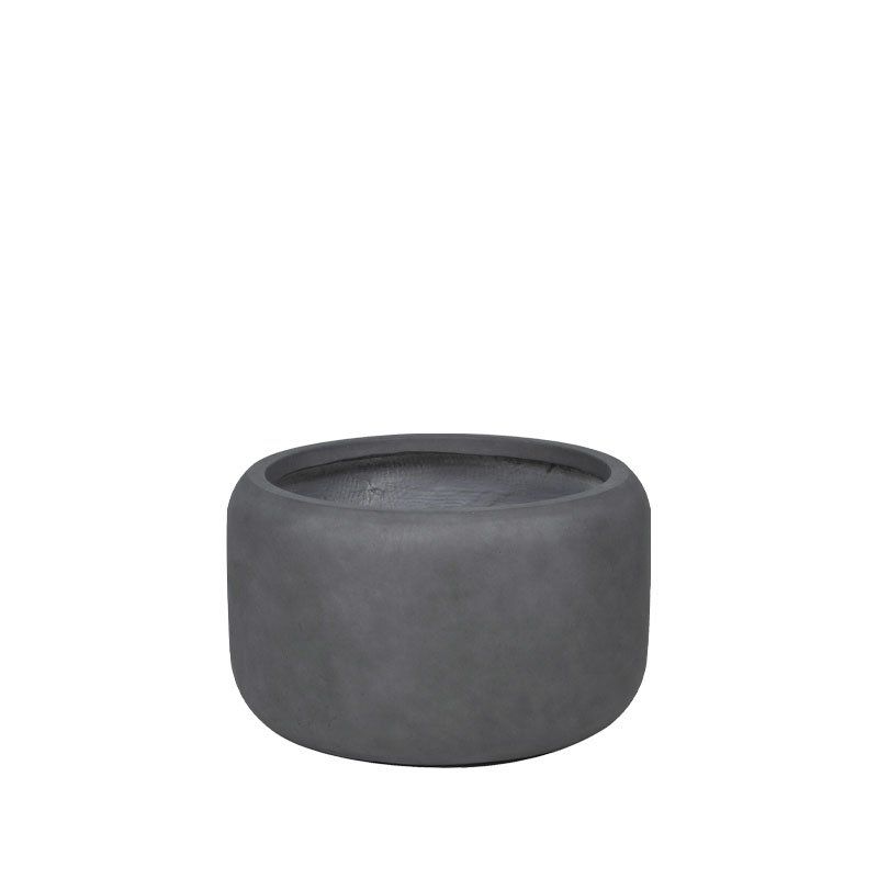 Саксия от фиберглина, сива, с въглищна бухел, помпа, къса, средна - Φ44x26см