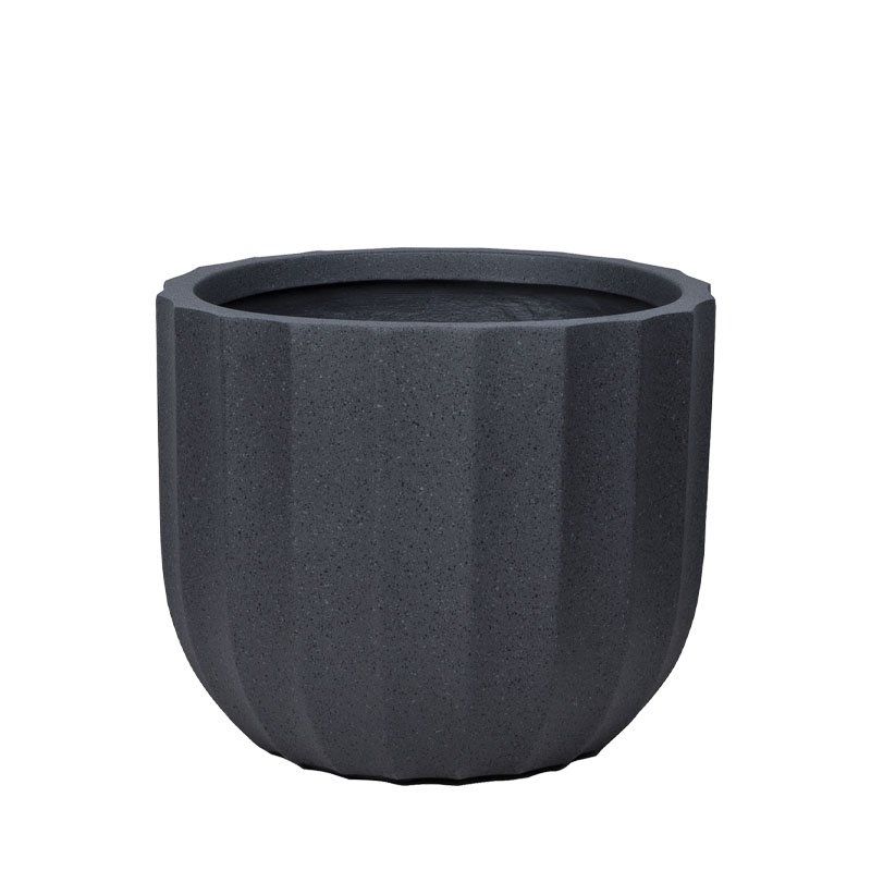 Саксия от черен гранит с фиберклей с колона, ниска, гигантска - Φ55.5x46.5 см