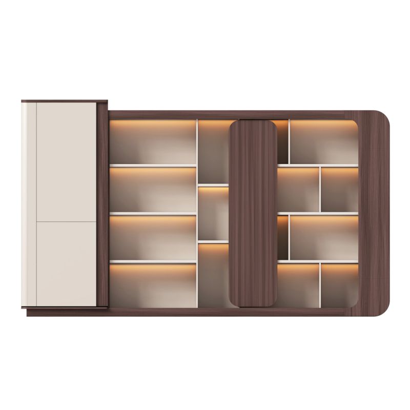 СЕРИЯ БИБЛИОТЕКА PRESIDENT HM2149 МЕЛАМИН В БЕЖОВО И ОРЕХОВО-LED ОСВЕТЛЕНИЕ 340X40X200ВСМ.