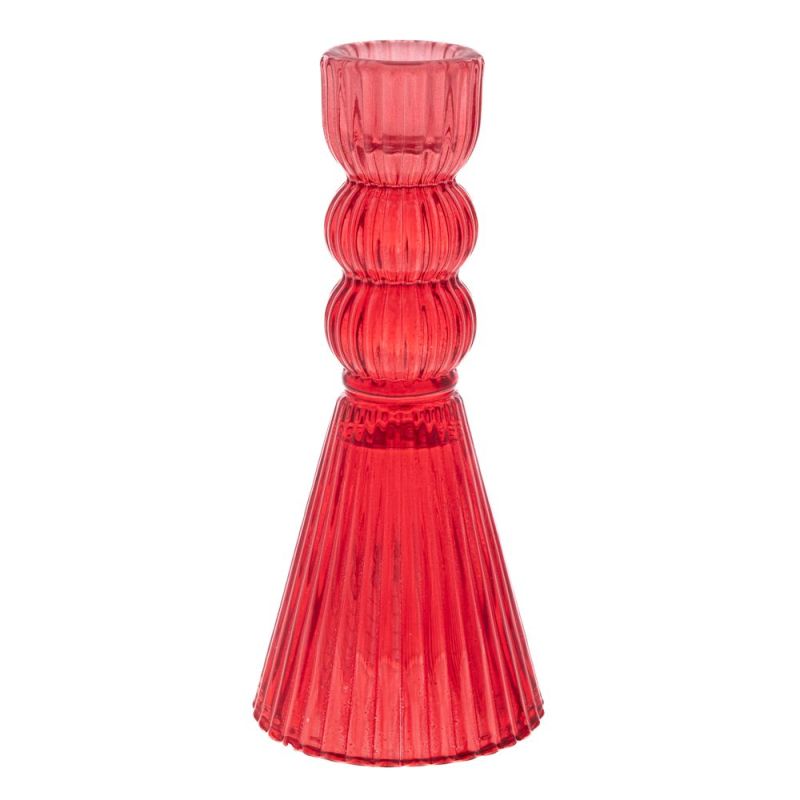 СТЪКЛЕН ЧЕРВЕН СВЕЩНИК 6.2X15СМ.