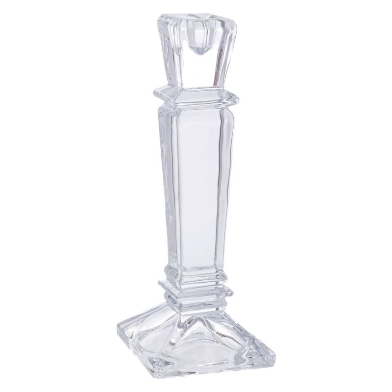 СТЪКЛЕНА ПРОЗРАЧНА СТЕКЛЕНА СВЕЩНИЦА 8X8X24.5 СМ.