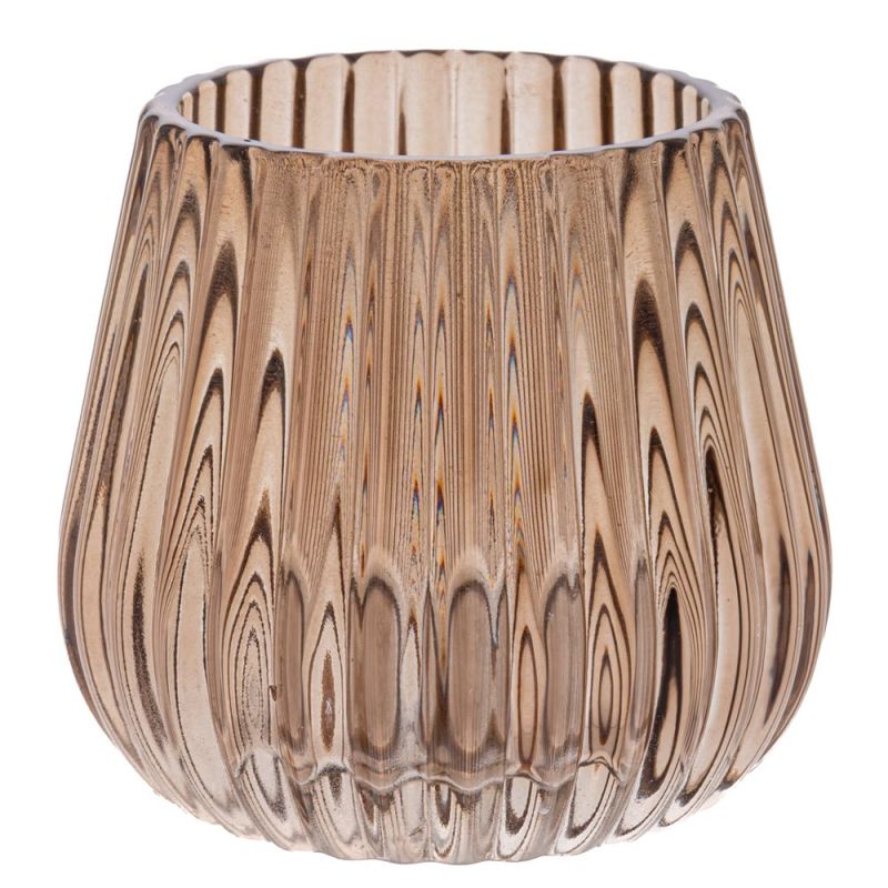 СТЪКЛЕНА СВЕТЛОКАФЯВА МАЛКА ВАЗА 8.1X7.4СМ.