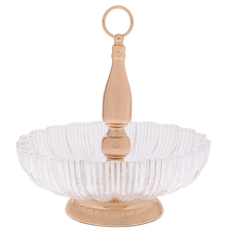 СТЪКЛЕНА ЧИНИЯ НА ЗЛАТИСТА МЕТАЛНА ОСНОВА 30X30X32,5 СМ