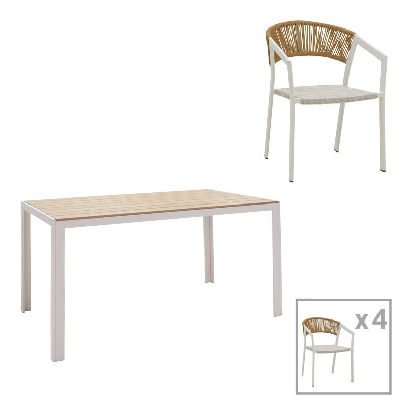 ТРАПЕЗНА МАСА NARES-GLISTEN КОМПЛЕКТ ОТ 5 ЧАСТИ БЕЛИ АЛУМИНИЕВИ И ШПЕРПЛАТ В ЕСТЕСТВЕН НЮАНС 140X80X72.5СМ