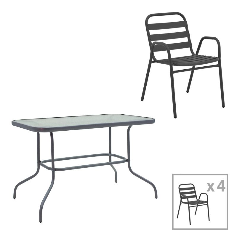 ТРАПЕЗНА МАСА VALOR-SUSSIE КОМПЛЕКТ ОТ 5 ЧАСТИ АНТРАЦИТ МЕТАЛ-СТЪКЛО 110X60X70СМ