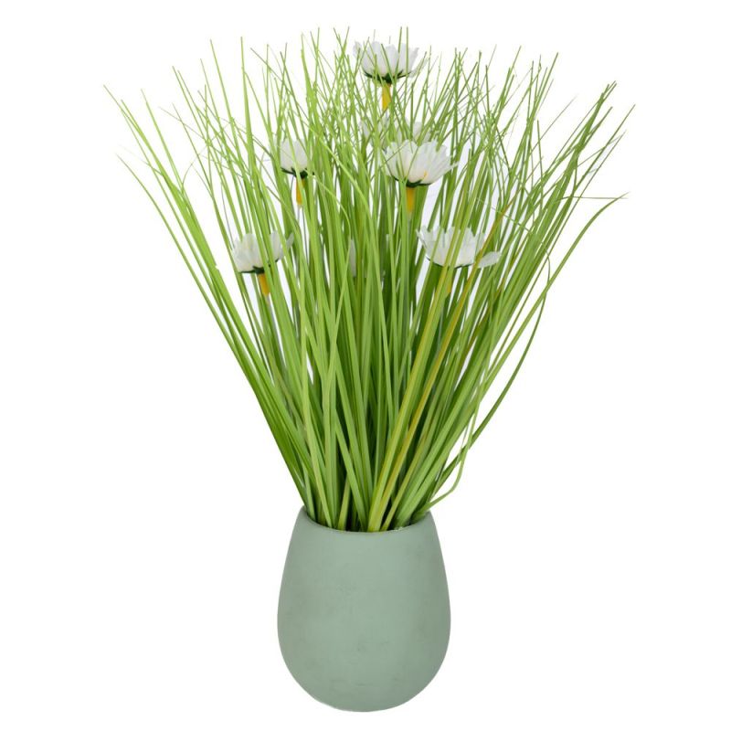 ТРЕВА В БЯЛА КЕРАМИЧНА САКСИЯ 10X9X31 СМ