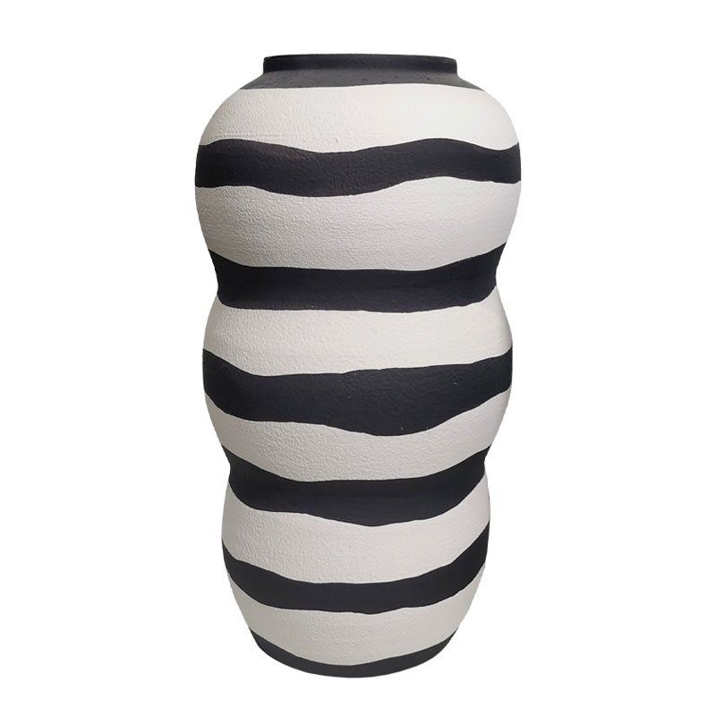 Циментова ваза черно-бяла извита рая - 23x24x45см 1/кутия