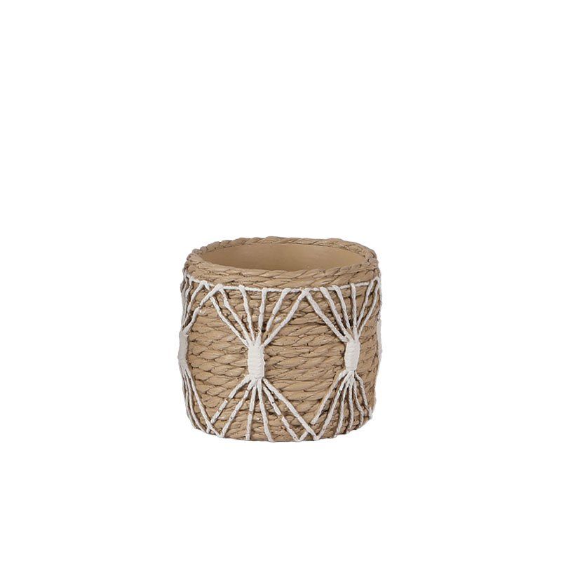 Циментова саксия, бежова, кръгла, плетена Φ15.5x13см - 1/12кутия