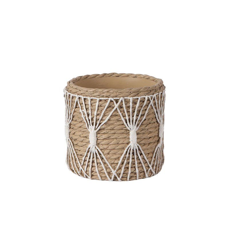 Циментова саксия, бежова, кръгла, плетена Φ18.5x16.5см - 1/6kib