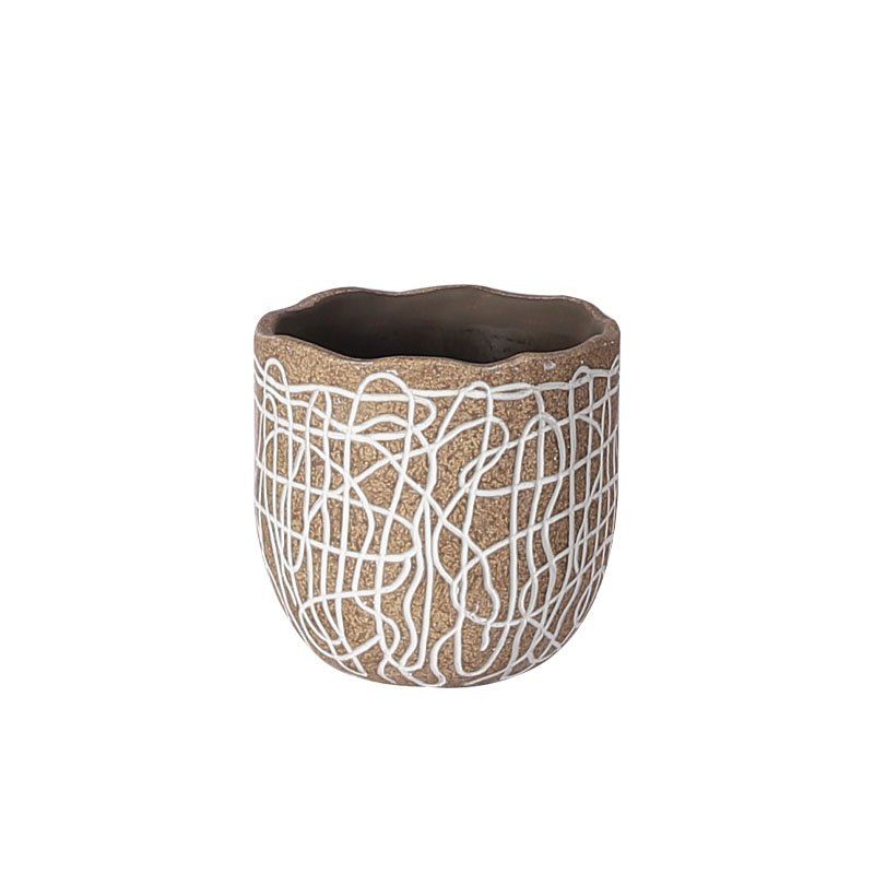 Циментова саксия, бежово-бяла, кръгла с абстрактни линии Φ18x17.5см - 1/6kib