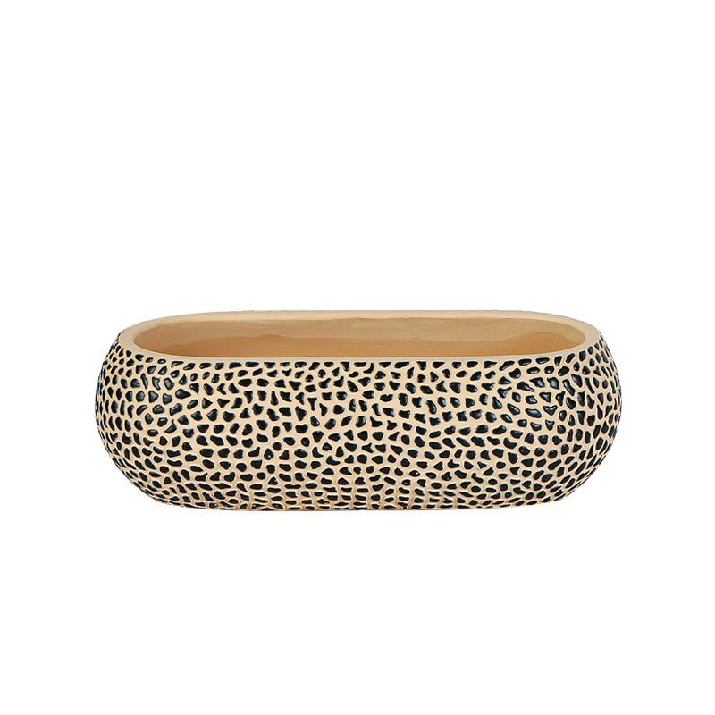 Циментова саксия, бежово-черна, малка саксия на точки, 32,5x15x10см - 1/8kib