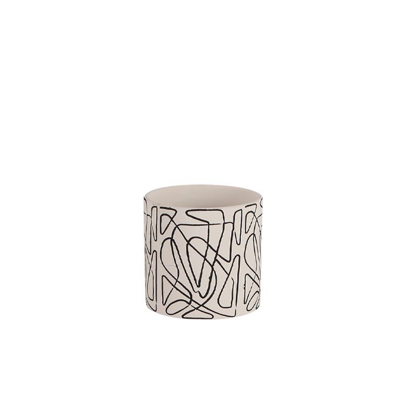 Циментова саксия, кремаво-черна, кръгла с абстрактни линии Φ13.5x12.5см - 1/24кутия