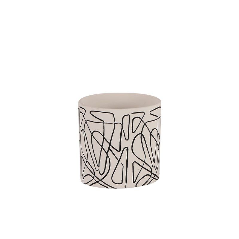 Циментова саксия, кремаво-черна, кръгла с абстрактни линии Φ16.5x15см - 1/12кутия
