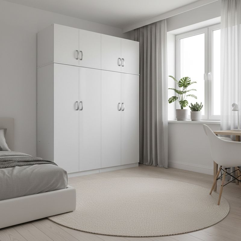 Четирикрилен гардероб с таванско помещение Athos I бял 160x42x240см