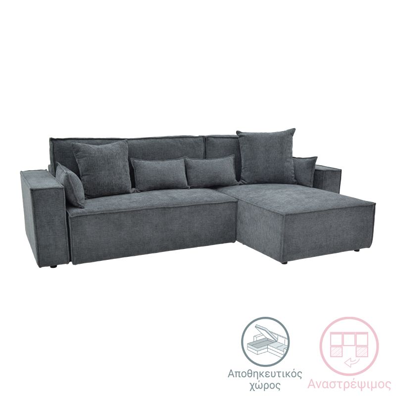 Ъглов разтегателен диван с обръщане Kerbian, тъмносив цвят, плат, 273x162x92см